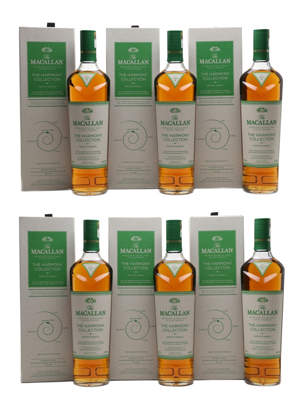 This lot contains six bottles of The Macallan Smooth Arabica Highland Single Malt Scotch Whisky from The Harmony Collection. This is inspired by the Ethiopian Arabica bean, in collaboration with inspiring masters from around the world of coffee.