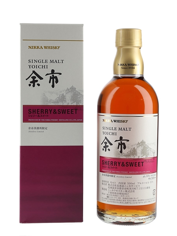 A bottle of Nikka Yoichi Sherry & Sweet. The name, Sherry & Sweet, describes the whisky's character. This was released as a distillery exclusive bottling.