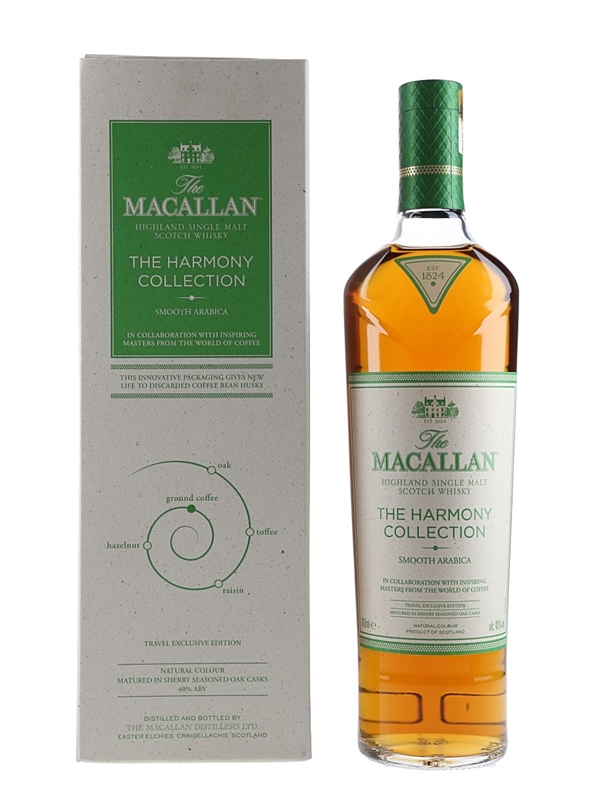 A bottle of The Macallan Smooth Arabica Highland Single Malt Scotch Whisky from The Harmony Collection. This is inspired by the Ethiopian Arabica bean, in collaboration with inspiring masters from around the world of coffee.