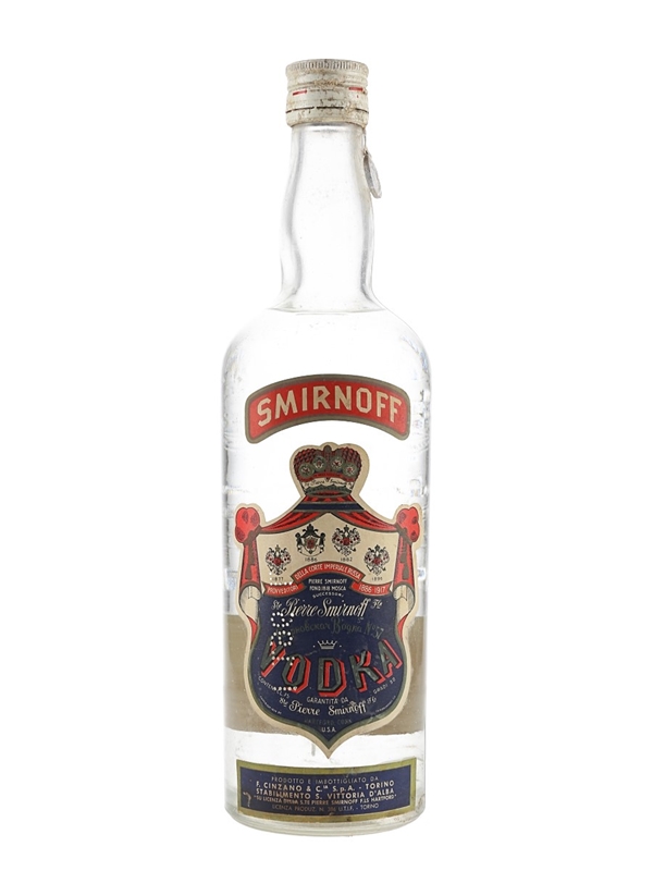 A bottle of Smirnoff Blue Label Vodka. This was produced in United States and bottled for the Italian market and imported by Cinzano, we estimate in the 1950s.