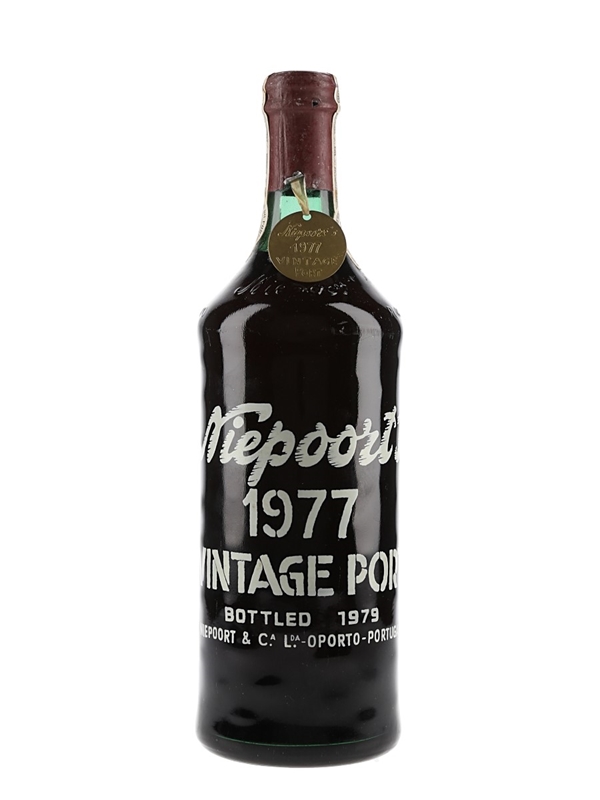 A bottle of Niepoort's 1977 Vintage Port bottled in 1979.