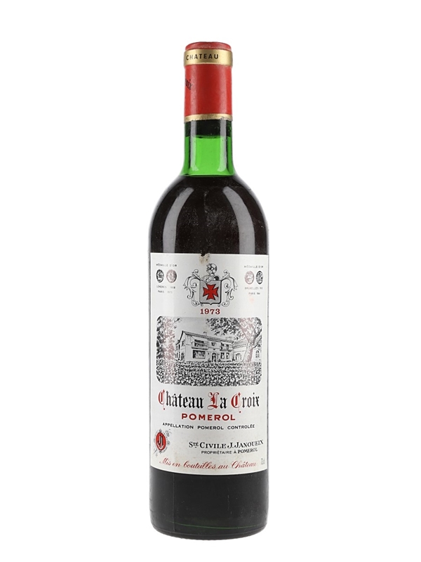 A bottle of Chateau La Croix 1973 from Bordeaux's Pomerol appellation. La Croix is a 10 hectare estate owned by the Janoueix family, with vines growing in a single plot on sandy gravel soils, planted with 60% Merlot, 20% Caberrnet Franc and 20% Cabernet Sauvignon.