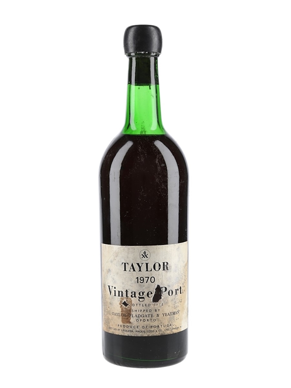 A bottle of Taylor 1970 Vintage Port, bottled in 1972 by Findlater, Mackie, Todd & Co. Ltd. in London and shipped by Taylor Fladgate & Yeatman, Oporto.