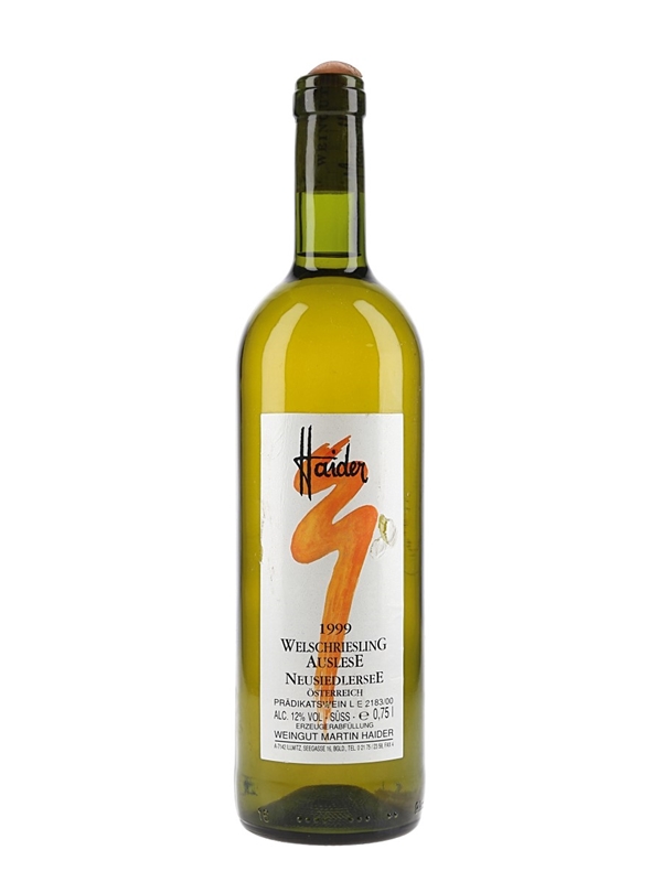 A bottle of 1999 Haider Welschriesling Auslese from Austria.