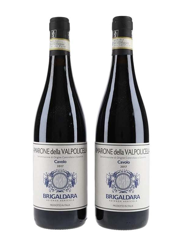 This lot contains two bottles of 2017 Amarone della Valpolicella Cavolo from the Cantina di Brigaldara, a full-bodied dry red wine made from partially dried fruit. This is a blend of 59% Corvina, 21% Corvinone and 31% Rondinella harvested from selected bunches which are dried for 120 days prior to fermentation.