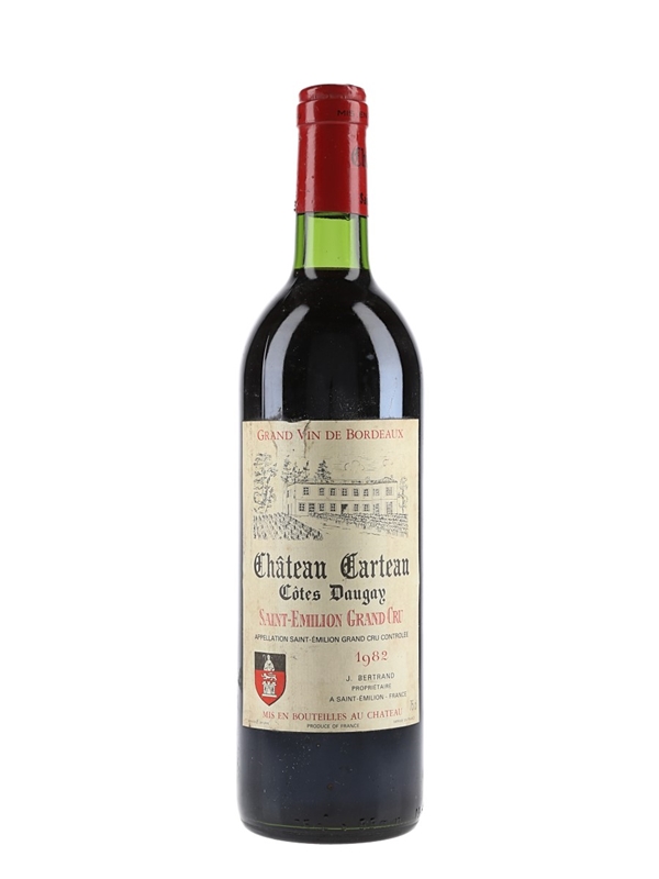 A bottle of Château Carteau 1982 - Côtes Daugay, a 16 hectare Grand Cru from the Saint-Emilion appellation, planted with 65% Merlot, 30% Cabernet Franc and 5% Cabernet Sauvignon.