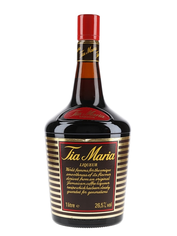 A litre bottle of Tia Maria, a Jamaican coffee liqueur produced by Tia Maria International Ltd., London, and bottled at 26.5% ABV. We estimate this was bottled in the 1990s.