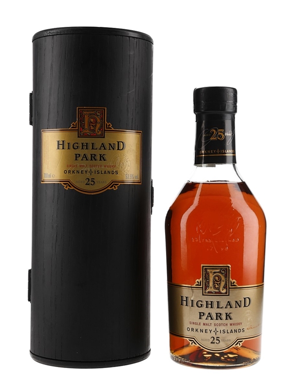 A bottle of Highland Park 25 Year Old Single Malt Scotch Whisky. This was bottled at cask strength, we estimate in the 1990s.
