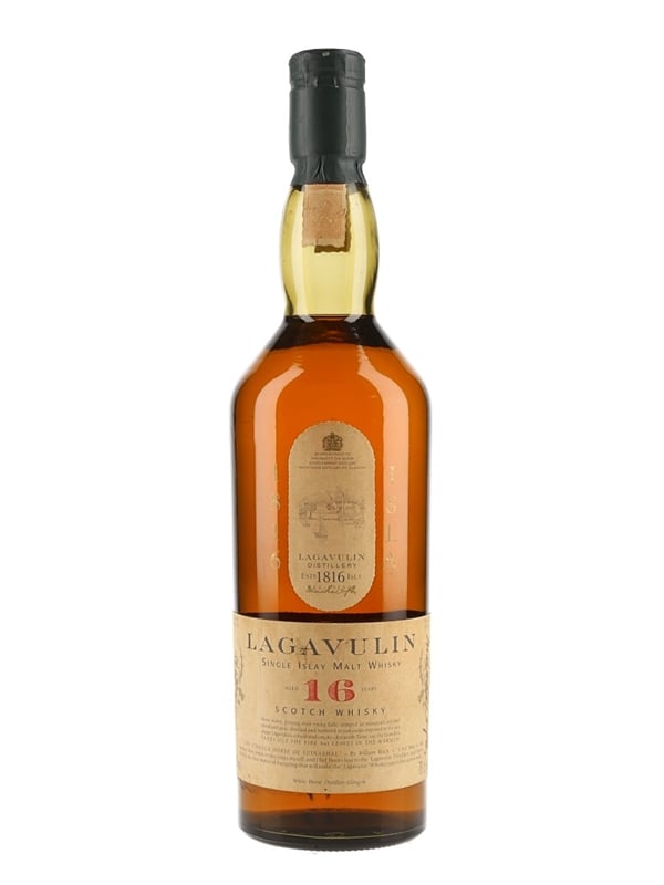 A bottle of Lagavulin 16 Year Old Single Islay Malt Scotch Whisky, part of Diageo's Classic Malts of Scotland range. We estimate this was bottled in the 1990s, when the distillery was still owned by White Horse Distillers.