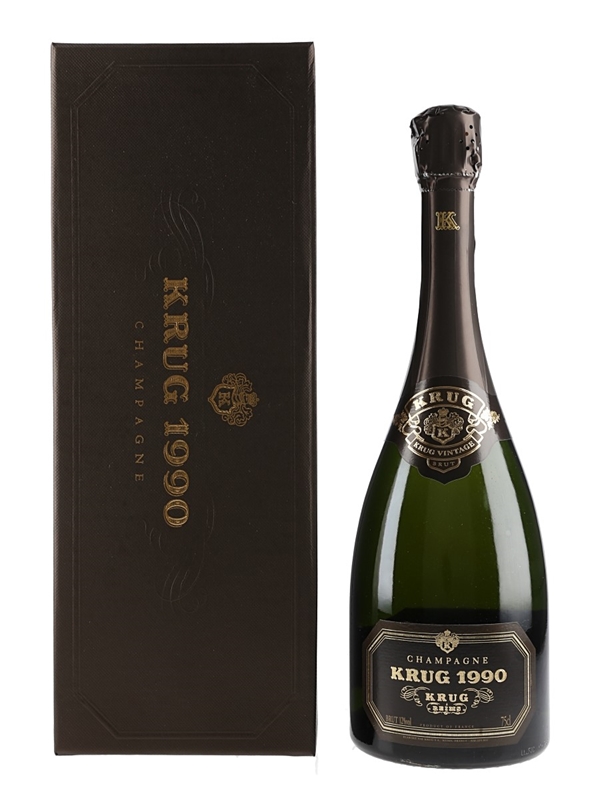 A bottle of Krug 1990 vintage Champagne.