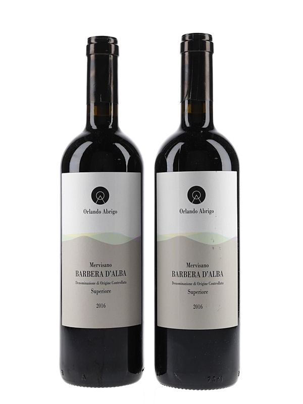 This lot contains two bottles of 2016 Orlando Abrigo Mervisano Barbera D'Alba Superiore from Piedmont.