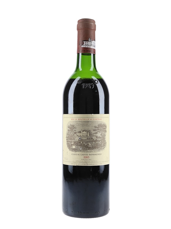 A bottle of 1985 Chateau Lafite Rothschild from Bordeaux's Pauillac appellation.