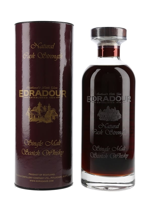 A bottle of Edradour Natural Cask Strength Single Malt Scotch Whisky. This was distilled on 20 March 2009, matured in a single cask and bottled at natural cask strength on 19 May 2021.