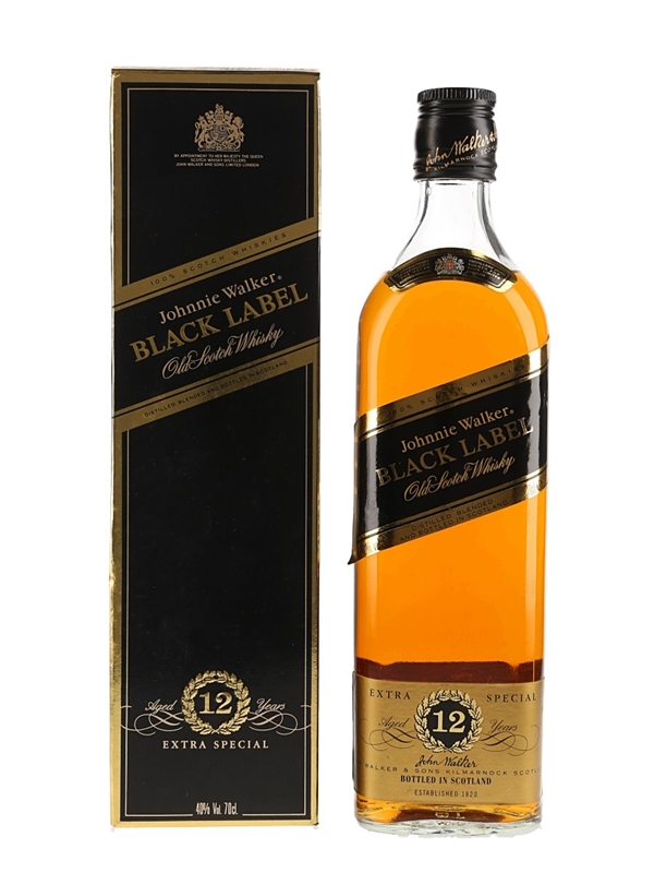 A bottle of Johnnie Walker Black Label 12 Year Old Extra Special Old Scotch Whisky. We estimate this was bottled in the 1990s.