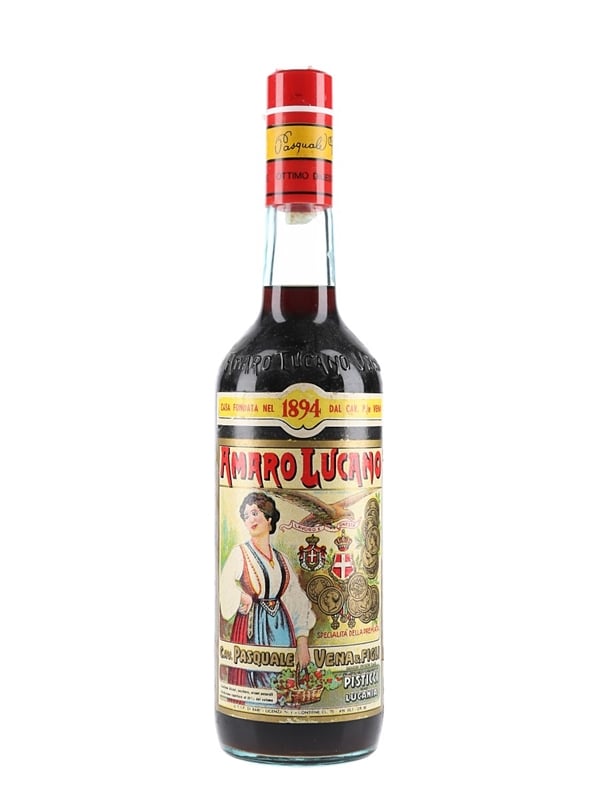 A bottle of Amaro Lucano, a bitter liqueur produced by Cav. Pasquale Vena & Figli in Pisticci, Italy. We estimate this was bottled in the 1980s.