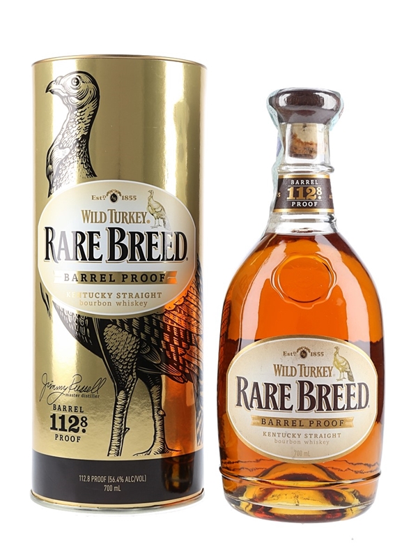 A bottle of Wild Turkey Rare Breed Kentucky Straight Bourbon Whiskey, bottled at barrel proof of 56.4% ABV.