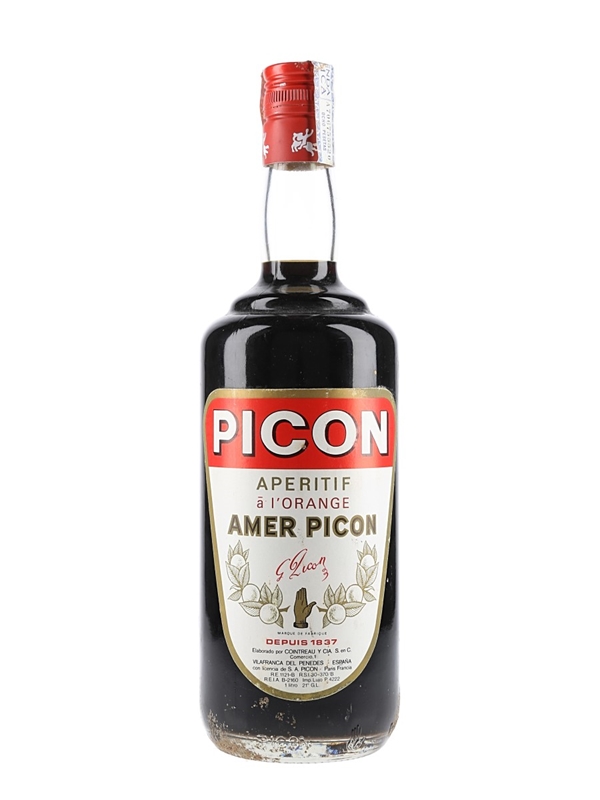 A litre bottle of Picon Aperitif a l'Orange, a bitter liqueur produced in Villafranca Del Penedes, Spain by Cointreau and flavoured with orange, gentian and cinchona. We estimate this was bottled in the 1980s.