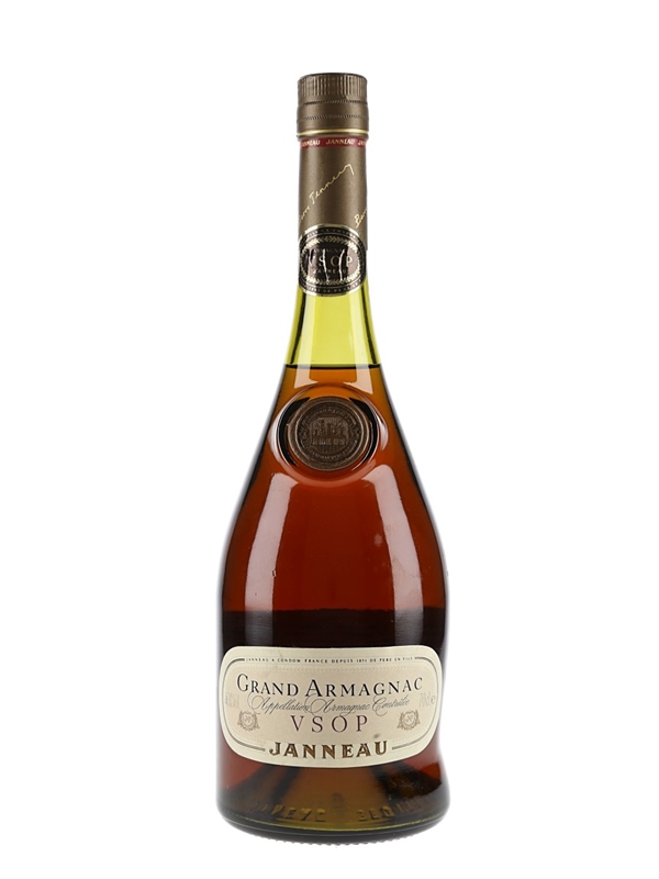 A bottle of Janneau VSOP Grand Armagnac, matured in oak casks from Gascony.