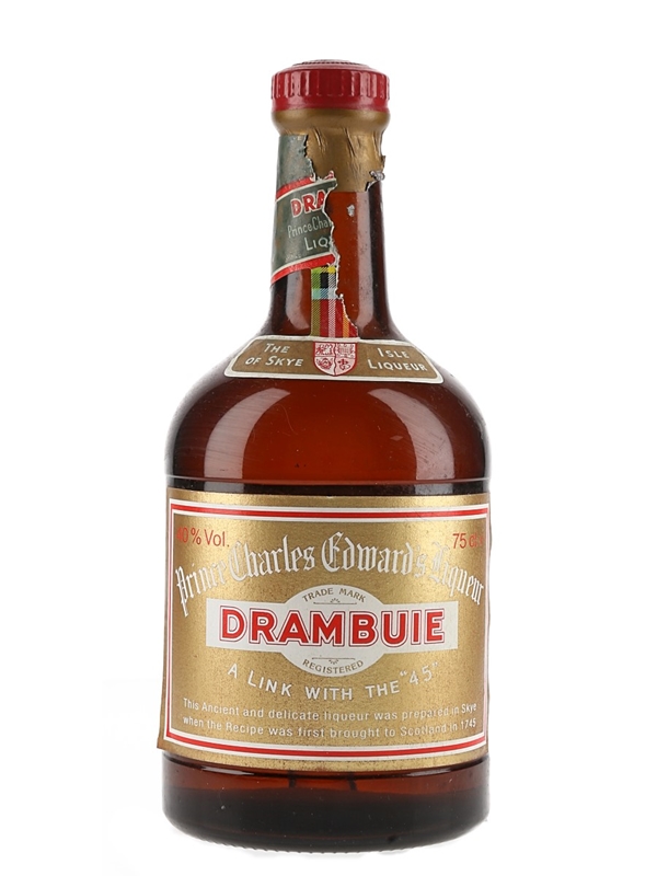 A bottle of Drambuie liqueur from the Isle of Skye. Drambuie is a liqueur made from Scotch whisky, honey, herbs and spices. The name is said to derive from the Gaelic 'an dram buidheach', meaning 'a drink that satisfies'. We estimate this was bottled in the 1980s.
