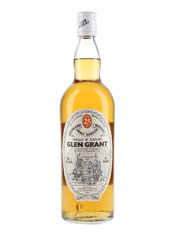 A bottle of Glen Grant 25 Year Old Highland Malt Scotch Whisky, bottled by Gordon & MacPhail. We estimate this was bottled in the 1970s.