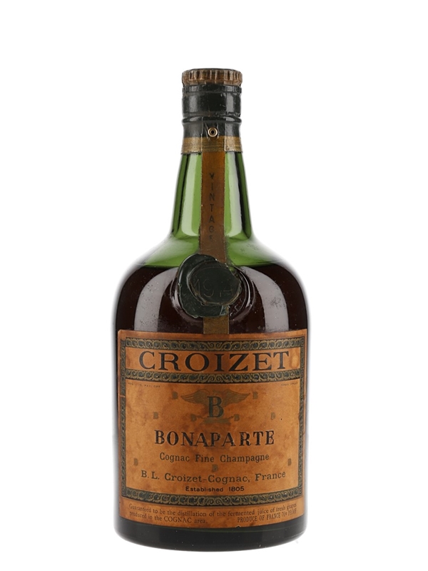 A bottle of Croizet 1914 Bonarparte Fine Champagne Cognac. We estimate this was bottled in the 1960s.
