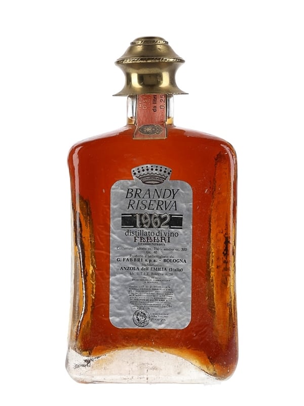 A bottle of Fabbri Brandy Riserva 1962. We estimate this was bottled in the 1970s.