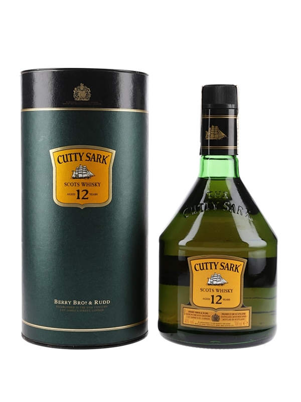A bottle of Cutty Sark 12 Year Old Blended Scots Whisky from Berry Bros & Rudd. This was imported to Portugal by Sogrape Distribuicao S.A.