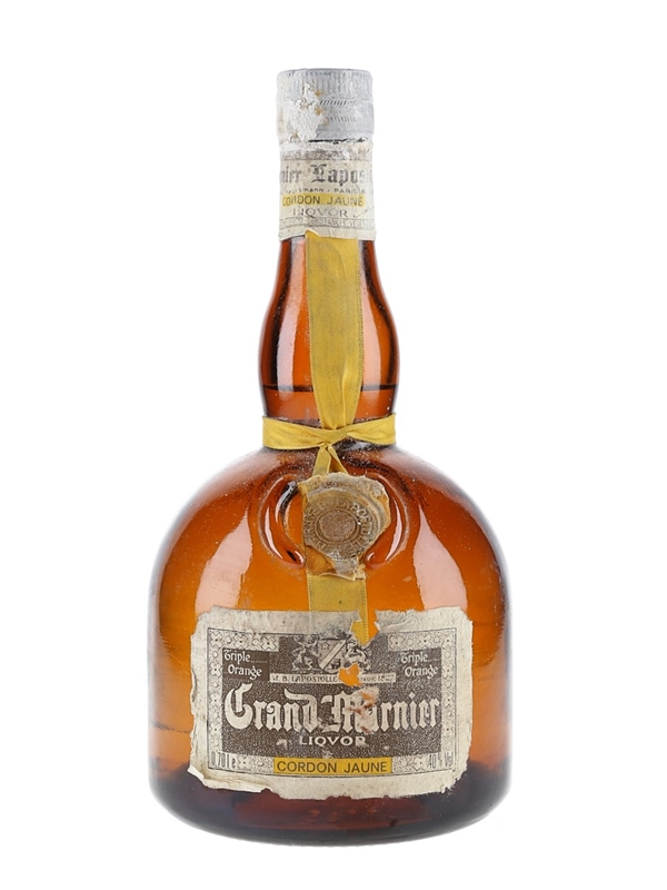 A bottle of Grand Marnier Cordon Jaune Triple Orange liqueur produced in France . We estimate this was bottled in the 1980s to 1990s.