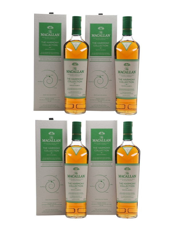 This lot contains four bottles of The Macallan Smooth Arabica Highland Single Malt Scotch Whisky from The Harmony Collection. This is inspired by the Ethiopian Arabica bean, in collaboration with inspiring masters from around the world of coffee.