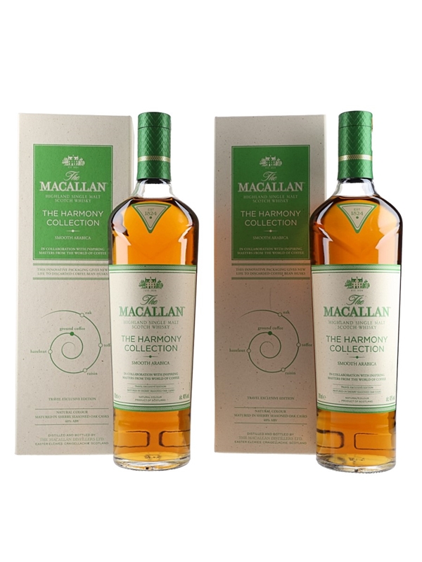 This lot contains two bottles of The Macallan Smooth Arabica Highland Single Malt Scotch Whisky from The Harmony Collection. This is inspired by the Ethiopian Arabica bean, in collaboration with inspiring masters from around the world of coffee.