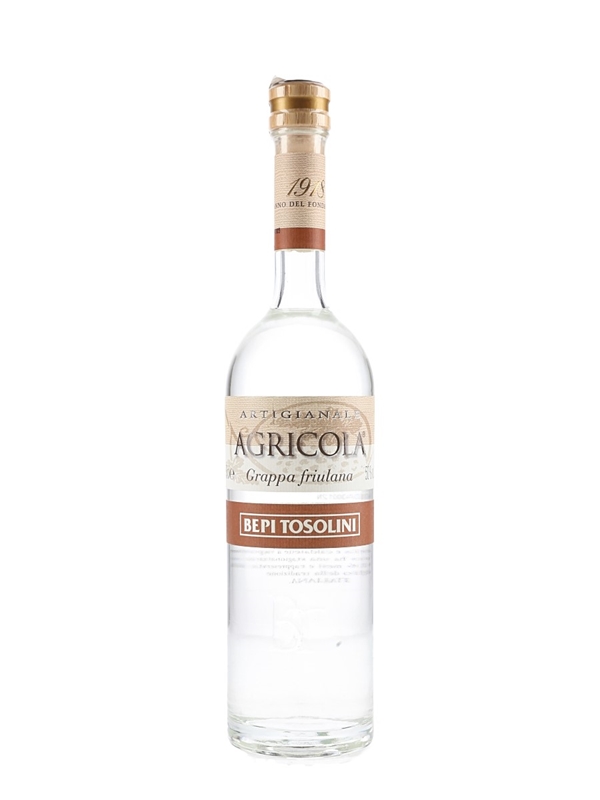 A 50cl bottle of Grappa Agricola from Italy produced by Bepi Tosolini. This is made from Pinot Grigio, Tocai, Ribolla, Cabernet Franc and Refosco grapes, in Italy's Friuli region.