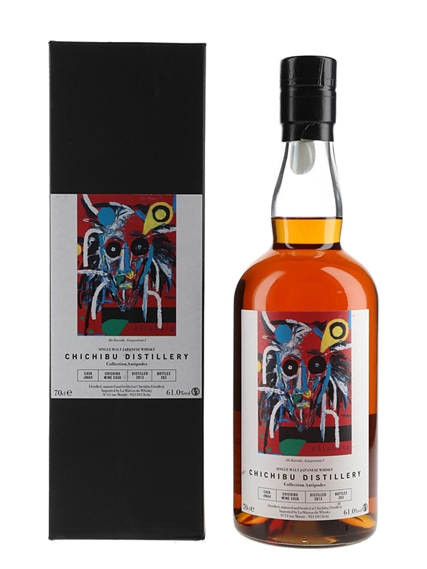 A bottle of Chichibu 2013 Collection Antipodes Japanese Whisky. This was distilled in 2013, matured in a single wine cask and bottled at cask strength.