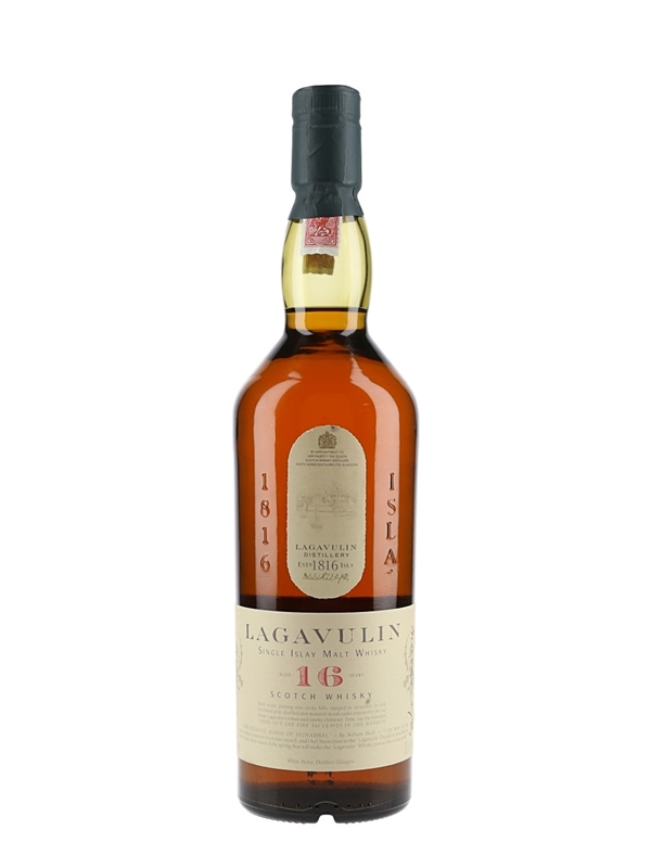 A bottle of Lagavulin 16 Year Old Single Islay Malt Scotch Whisky, part of Diageo's Classic Malts of Scotland range. We estimate this was bottled in the 1990s, when the distillery was still owned by White Horse Distillers.