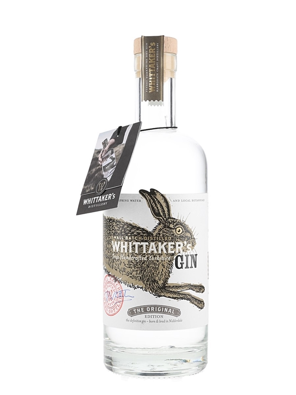 A bottle of Whittaker's Gin The Original Edition distilled in limited batches on the Jezebel still and bottled by hand at Harrogate Distillery.