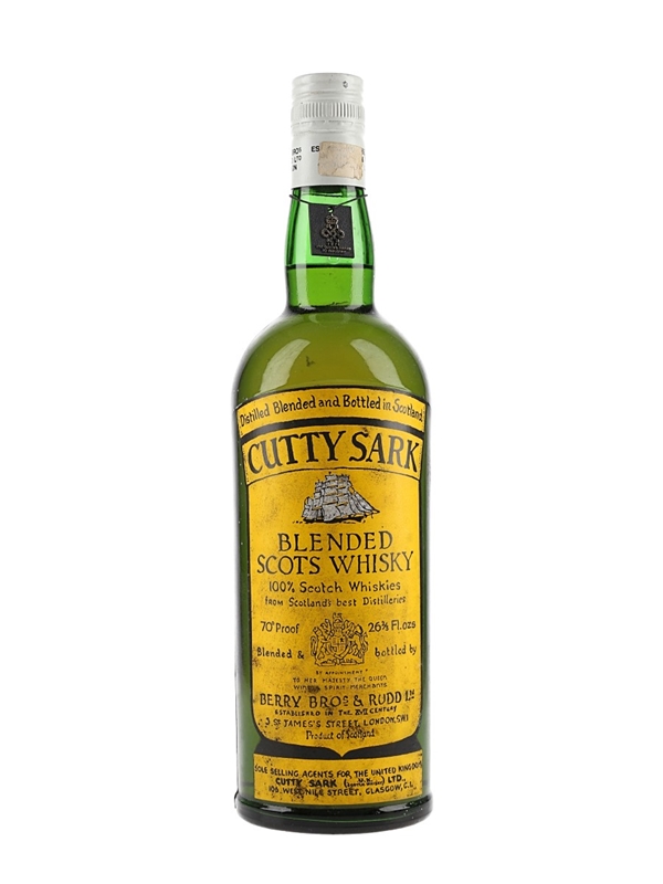A bottle of Cutty Sark Blended Scots Whisky, produced by Berry Bros & Rudd. We estimate this was bottled in the 1970s.