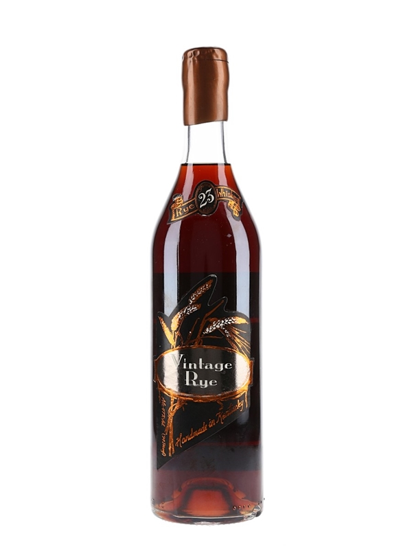 A bottle of Vintage Rye 23 year old rye whiskey, Handmade in Kentucky.