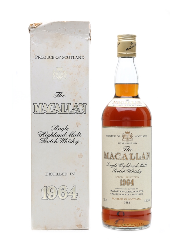 A bottle of The Macallan 1964, bottled in 1982.
