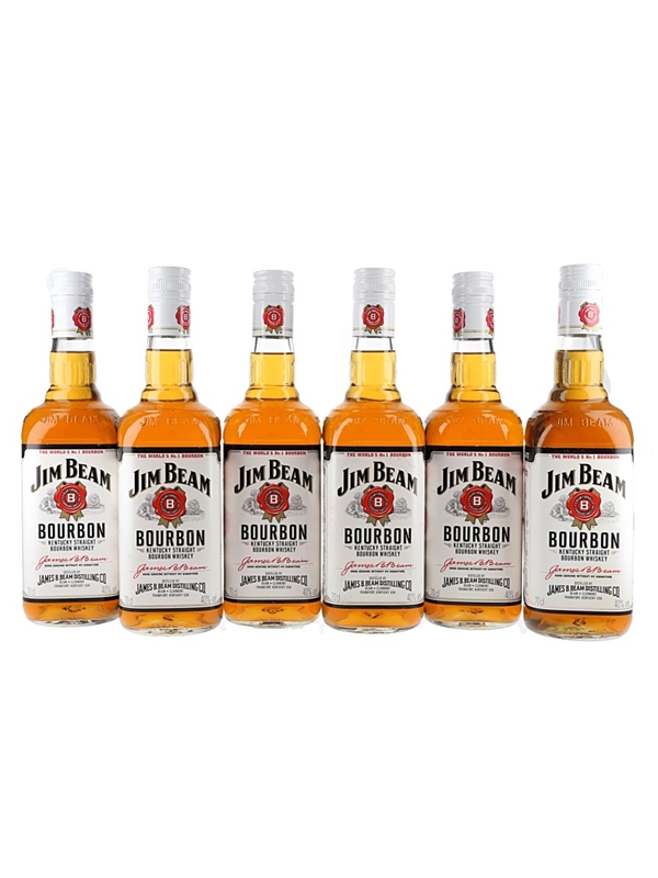 This lot contains six bottles of Jim Beam White Label Kentucky Straight Bourbon Whiskey.