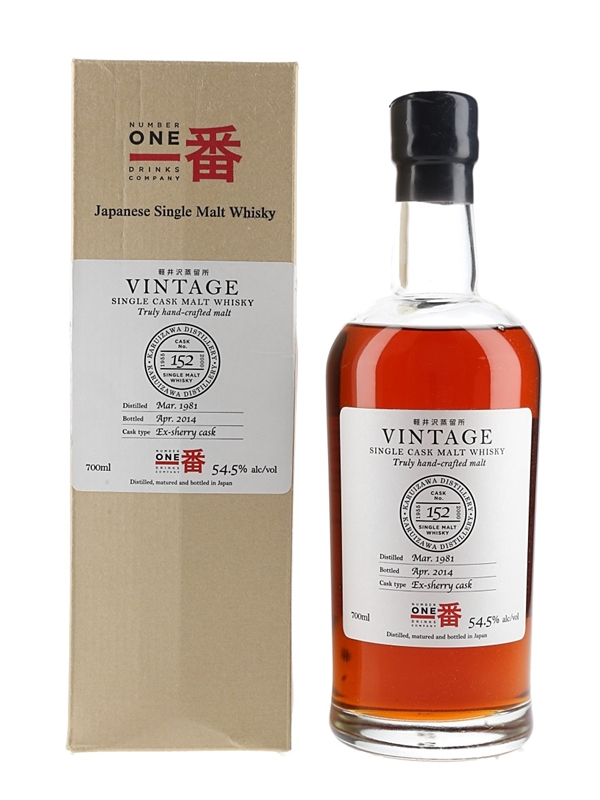 A bottle of Karuizawa that was distilled in March 1981 and matured in an ex-sherry cask. It was bottled in April 2014 by Number One Drinks Company.