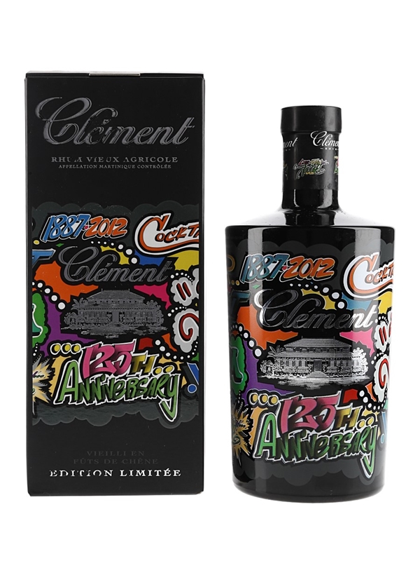 A bottle of Clement Rhum Vieux Agricole rum from Martinique. This was released in 2012 to celebrate the distillery's 125th anniversary. The bottle was designed by Jonone, a Caribbean street artist. This is one of 30,000 bottles.