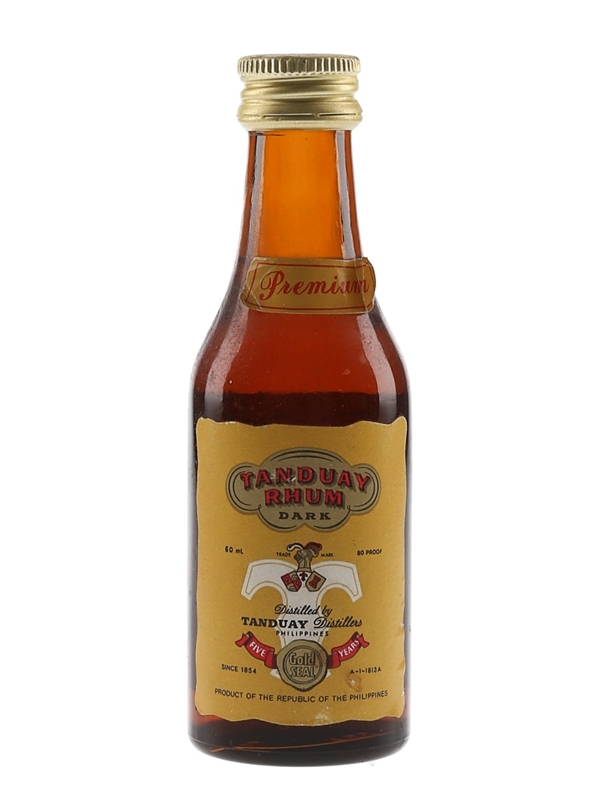 A 6cl miniature bottle of Tanduay Dark Rhum five year old from Philippines. We estimate this was bottled in the 1980s.