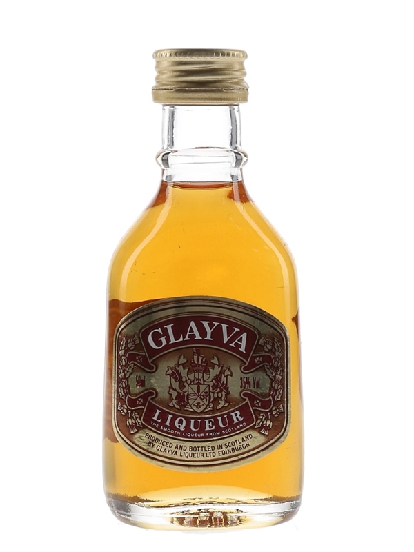 A miniature bottle of Glayva Scotch whisky liqueur, produced and bottled in Scotland.