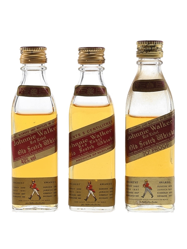 This lot contains three miniature bottles of Johnnie Walker Red Label Old Scotch Whisky, the world's best selling Scotch whisky produced by John Walker & Sons Ltd. We estimate these were bottled in the 1970s and 1980s.