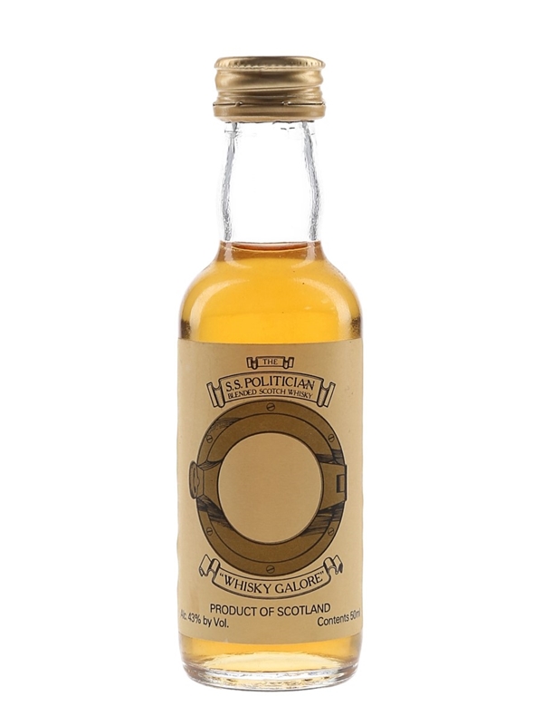 A miniature bottle of SS Politician Whisky Galore Blended Scotch Whisky.