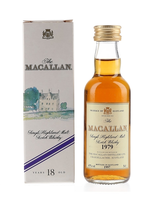 A miniature bottle of The Macallan 1979, bottled in 1997.