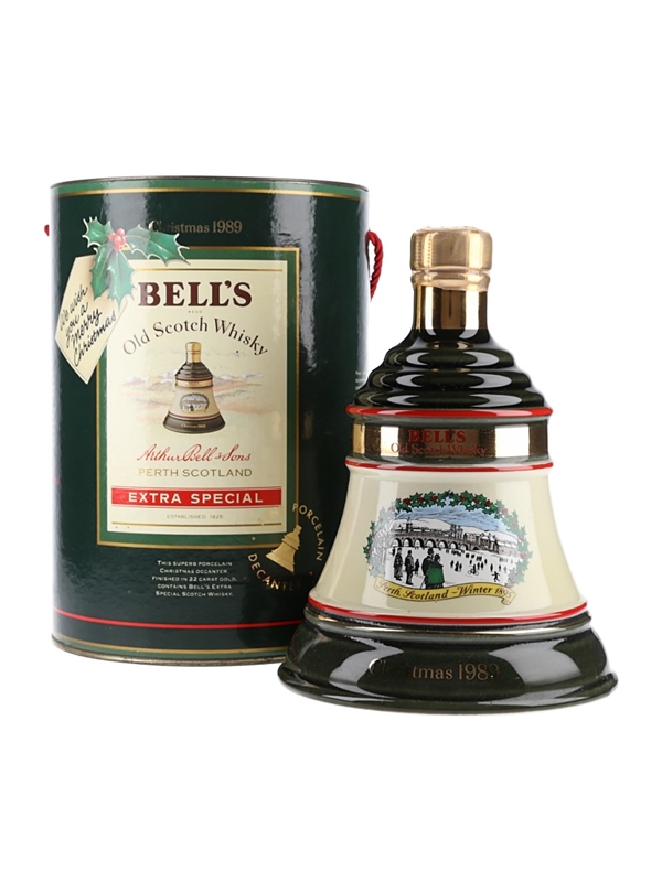 A bottle of Bell's Extra Special Old Scotch Whisky produced by Arthur Bell and Sons, presented in a wade porcelain decanter and released for Christmas 1989.