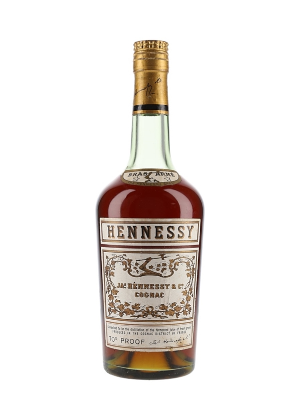 A bottle of Hennessy Bras Arme, named for its logo, the 'armed arm'. We estimate this was bottled 1970s.
