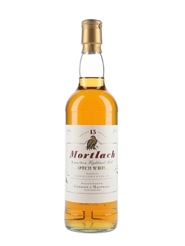 A bottle of Mortlach 15 Year Old Highland Malt Scotch Whisky from independent bottler Gordon & MacPhail.