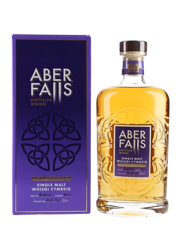 A limited edition bottle of Aber Falls Distillery Exclusive Single Malt Welsh Whisky, matured in Italian Barolo wine casks before being bottled at 52% ABV in August 2022.
