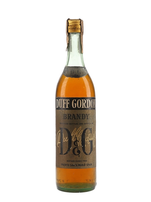 A bottle of Duff Gordon Spanish Brandy, produced in the Jerez region. We estimate this was bottled in the 1970s.